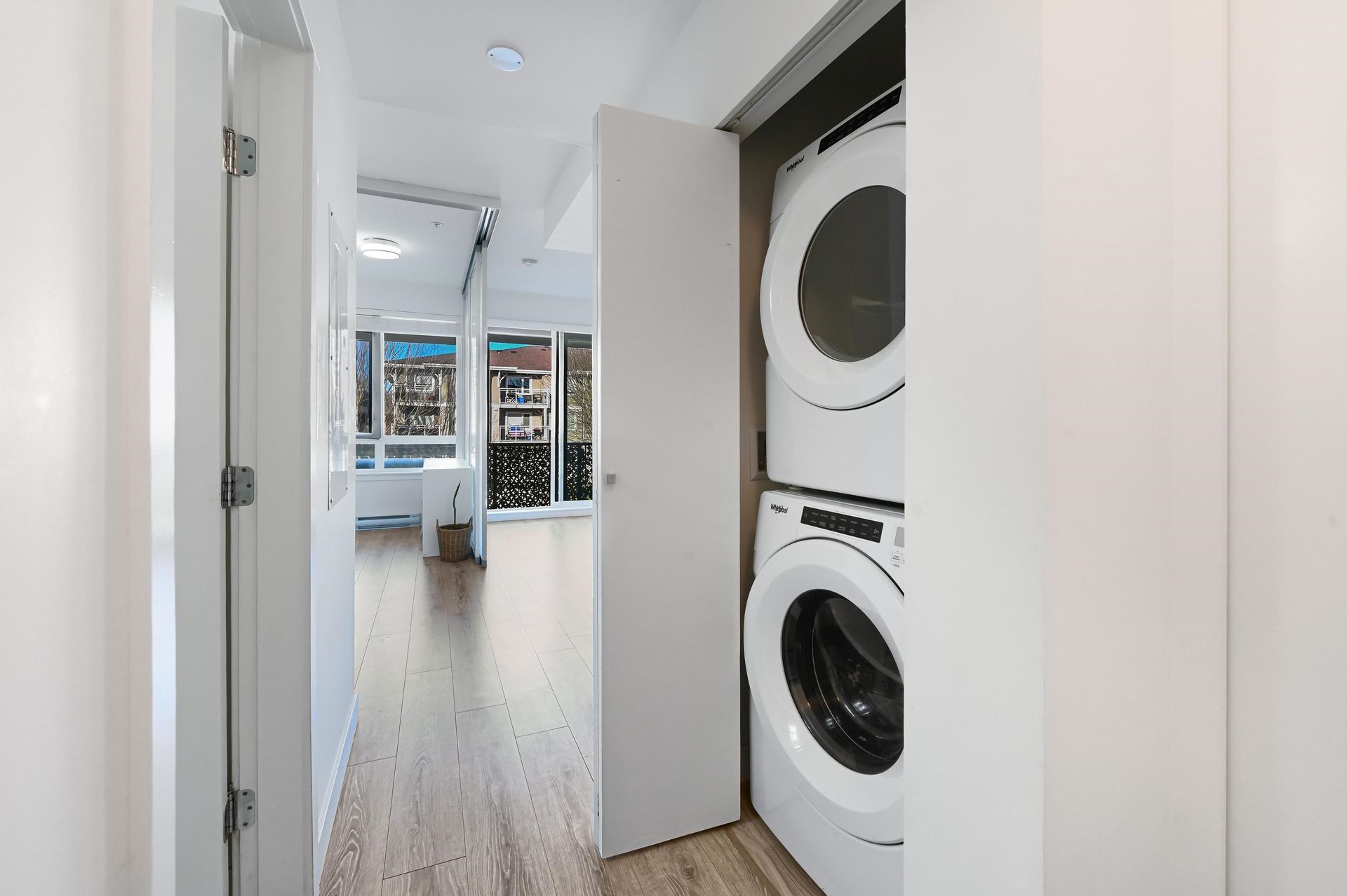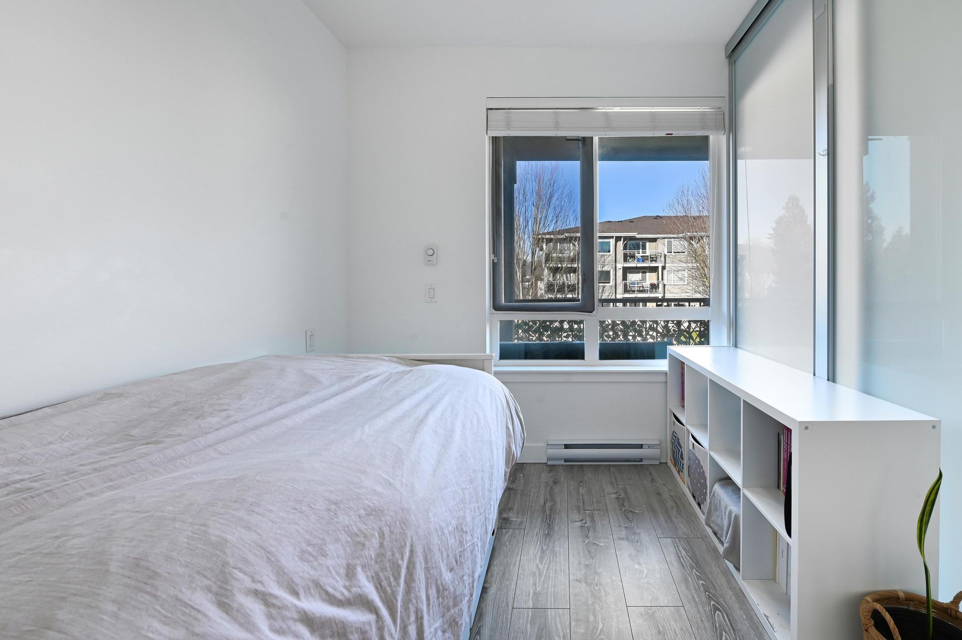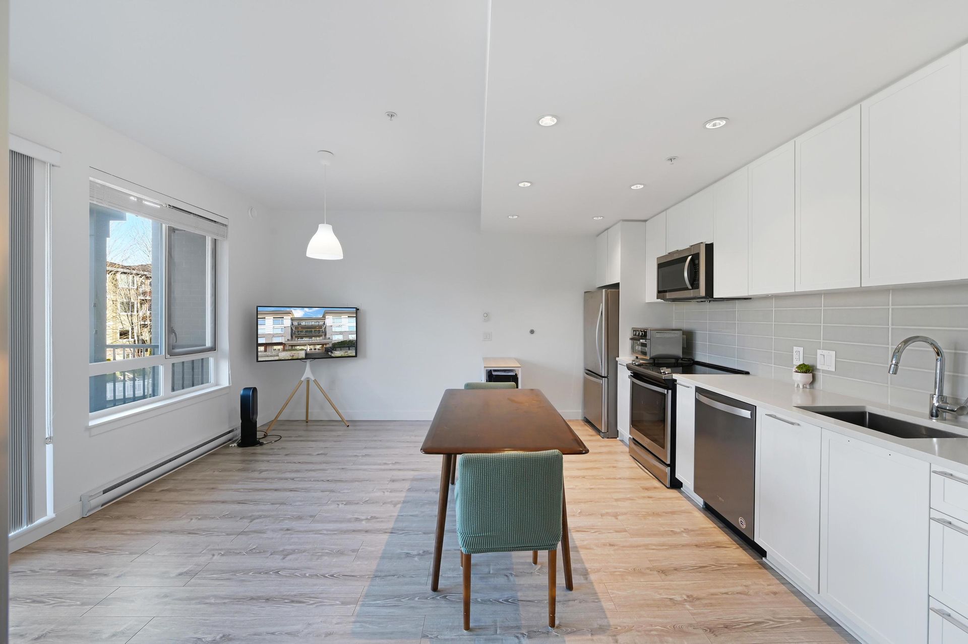 Discover Your Dream Home at Parc East by Trillium! This stunning one-bedroom condo in Port Coquitlam blends modern living with convenience. Nestled on a peaceful street, you get downtown amenities alongside nature. This beautifully designed unit features an open layout with 9 ft ceilings and contemporary finishes. The gourmet kitchen boasts Whirlpool stainless steel appliances, quartz countertops, and ample cabinetry. The spacious living area offers laminate flooring and a warm wood feature wall. Enjoy your bright bedroom with floor-to-ceiling glass sliders leading to a large private balcony—perfect for entertaining. Parc East includes fantastic amenities: fitness gym, meeting room, bike storage, plus one parking spot! Just steps from shops along Shaughnessy Street and nearby parks.